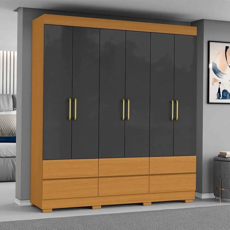 Guarda-Roupa Casal Marrocos 6 Portas 6 Gavetas – Cinamomo/Grafite – Praticidade e Organização com Estilo