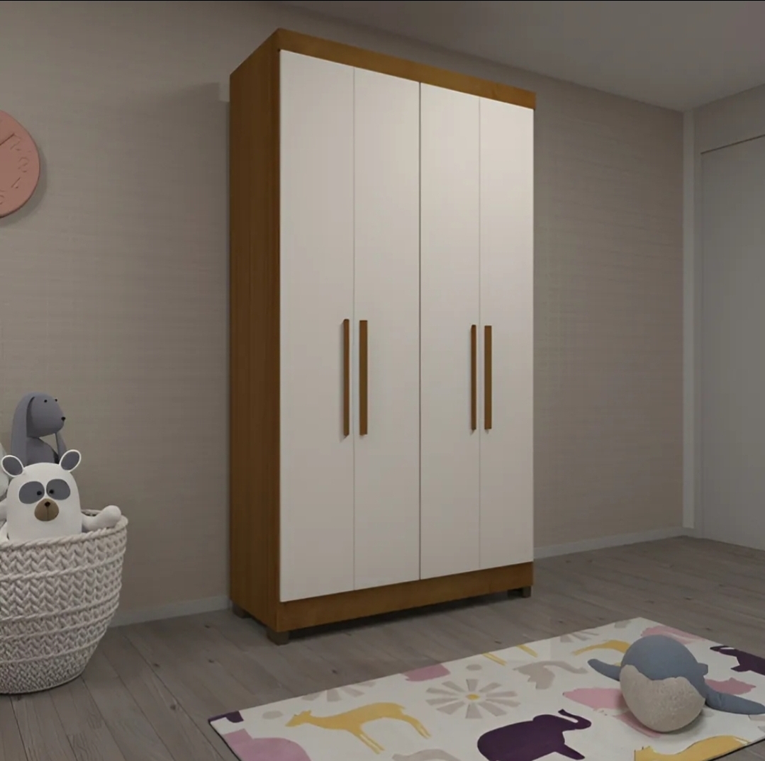 Guarda-Roupa Solteiro Genova Freijó/Areia 4 Portas 2 gavetas